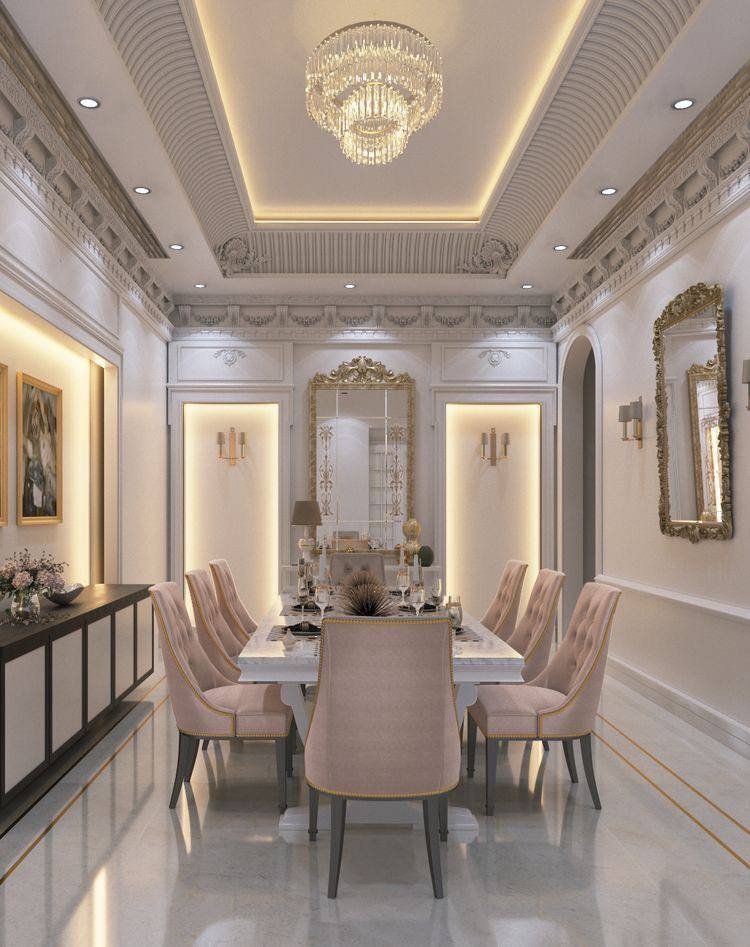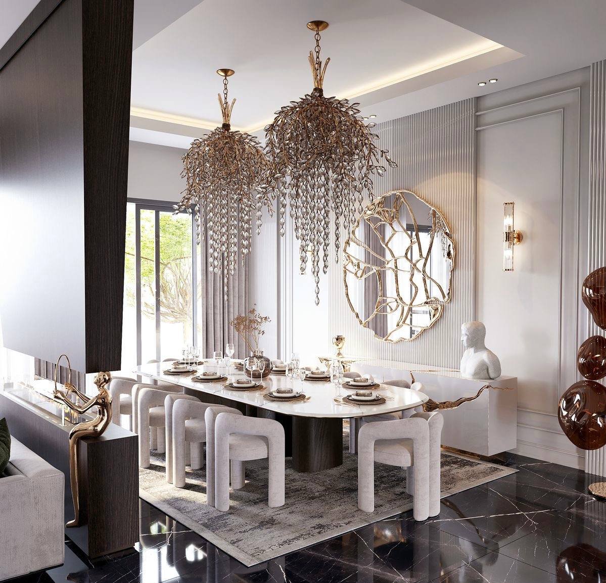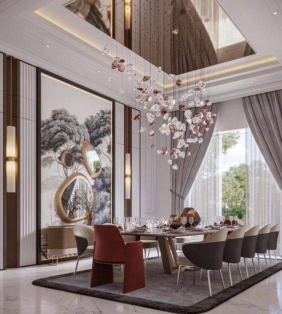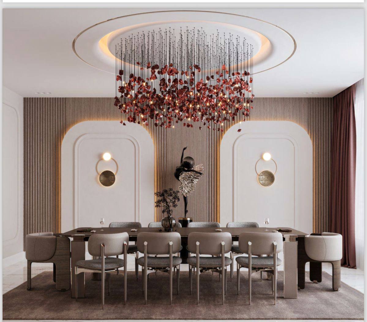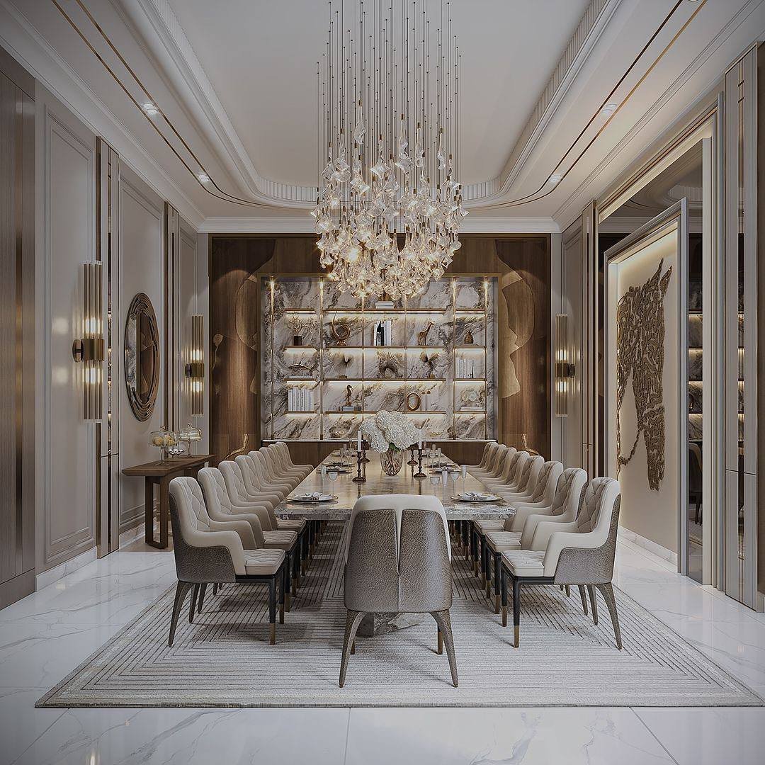 Our philosophy for luxury dining room design emphasizes refined details, warm lighting, and premium materials, creating spaces that feel both grand for formal gatherings and comfortable for intimate family dinners.